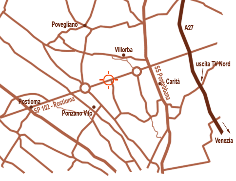 Dall'uscita Treviso Nord dell'autostrada A27, svoltare a sinistra. Raggiunta
